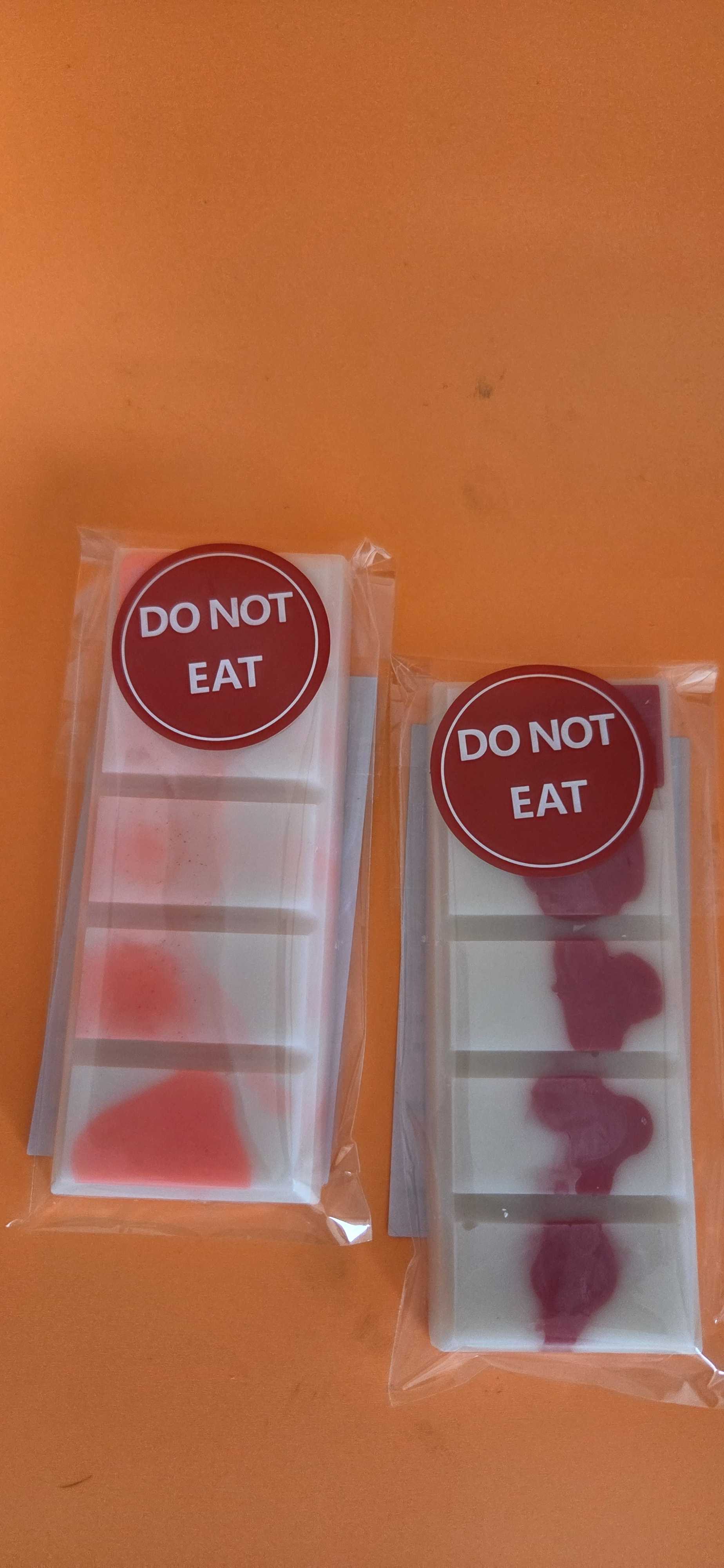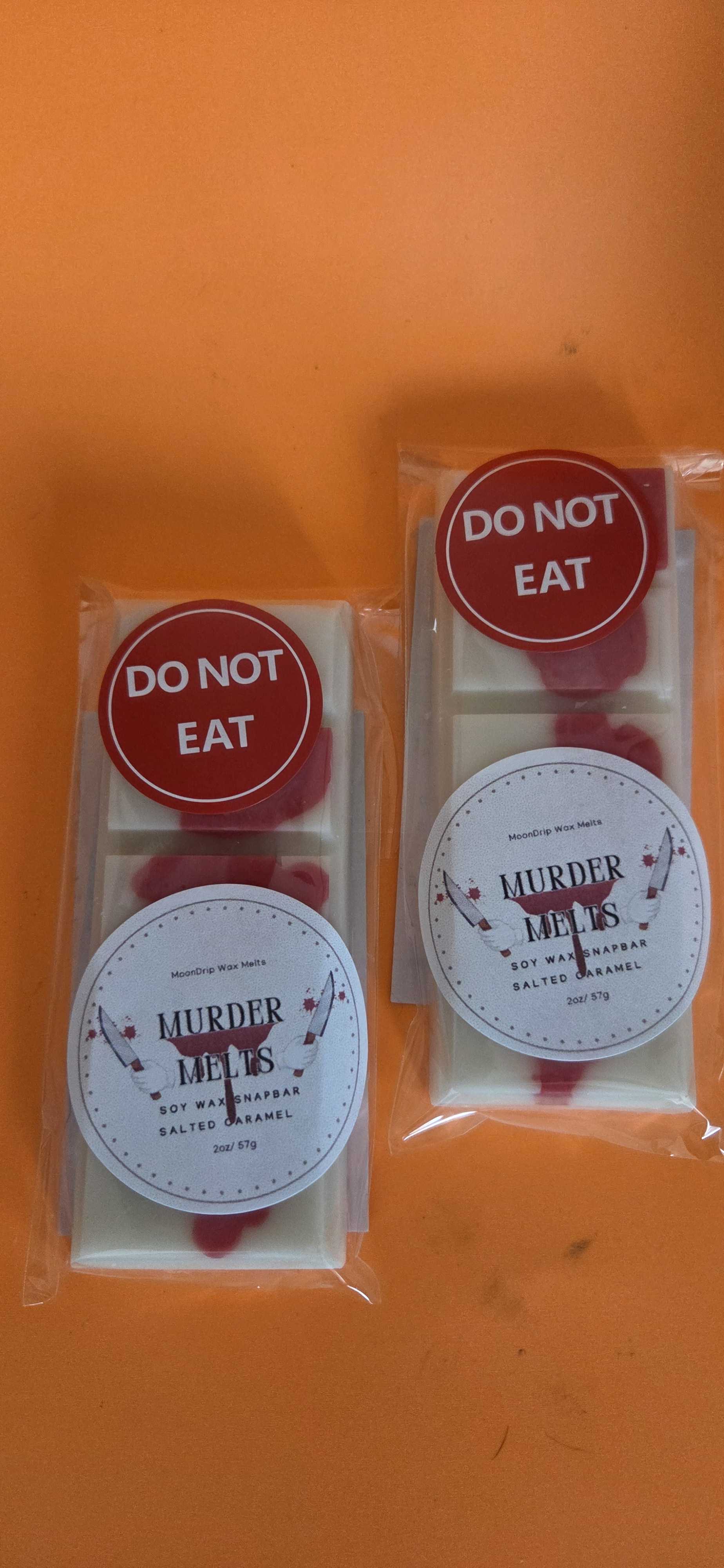 Our murder melts look a little different compared to our other types of melts. That's because these specific melts are called snap bars. Instead of dropping the whole melt in, you will break off a piece and place it in the melter instead.